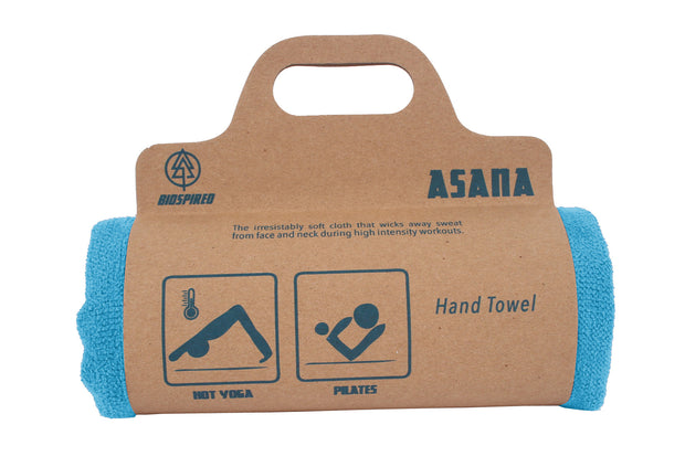 In Sanskrit, Asana describes a posture that is firm yet relaxed, foundational to practicing yoga. The Biospired Asana Hand Towel will be your best friend in the studio, keeping you dry and allowing you to focus on your practice. Our unique dual-knit construction of ultra-premium microfiber absorbs and evaporates all liquids, protecting your hands, neck & face from wetness, dirt & microbes. Perfect for Bikram Hot Yoga & other sweat-intensive workouts. Features durable nylon and polyester for long-lasting performance